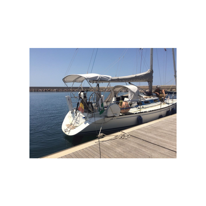 Das Tuch besteht aus Sunbrella Plus-Acrylgewebe, das mit Reißverschlüssen unter den Bögen und/oder für das/die Achterstag/e ausgestattet ist und einen wirksamen Schutz vor UV-Strahlen bietet.