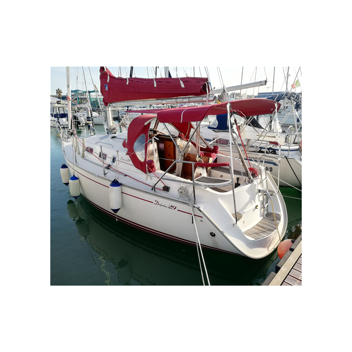 Made of Sunbrella Plus resin-coated acrylic fabric, equipped with zippers under the arches and passage/s for backstay/s, ensures effective protection from UV rays.