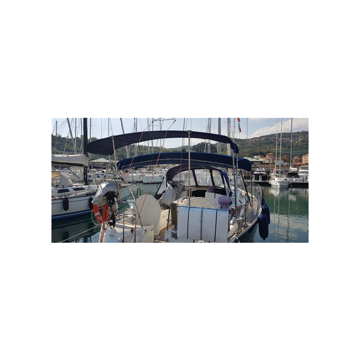 Made of Sunbrella Plus resin-coated acrylic fabric, equipped with zippers under the arches and passage/s for backstay/s, ensures effective protection from UV rays.